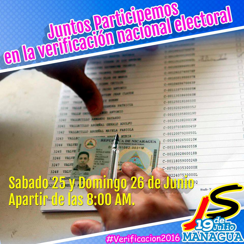 Las familias nicaragüenses están participando en la Verificación Ciudadana, proceso que desarrolla el Consejo Supremo Electoral (CSE) en todo el país previo a las Elecciones Nacionales del próximo 6 de noviembre.