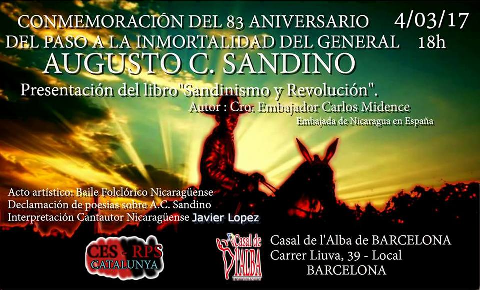 El día 04 de marzo del 2017, nuestro Comité Europeo de Solidaridad con la Revolución Popular Sandinista – Sección Catalunya ha realizado un acto cultural y presentación del Libro: Sandinismo y Revolución, escrito por el Cro. Embajador de Nicaragua en España CARLOS MIDENCE.