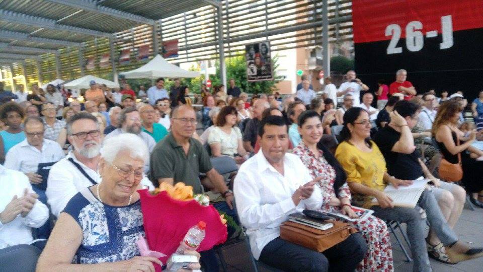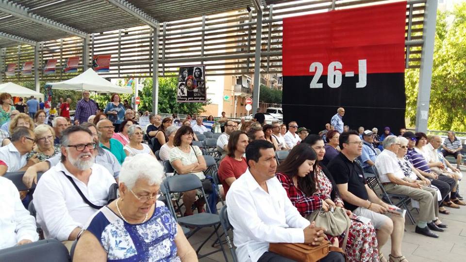 En la celebración del 64 aniversario de los asaltos al cuartel Moncada y Carlos Manuel de Céspedes en la Rambla del Ferrocarril de Rubi, el Cro. Embajador de Nicaragua en España Carlos Midence, brindo un Saludo al 38 Aniversario de la Revolución Popular Sandinista y el Cro. Jaume Soler leyo el Manifiesto realizado por el Comité Europeo de Solidaridad con la Revolución Popular Sandinista.