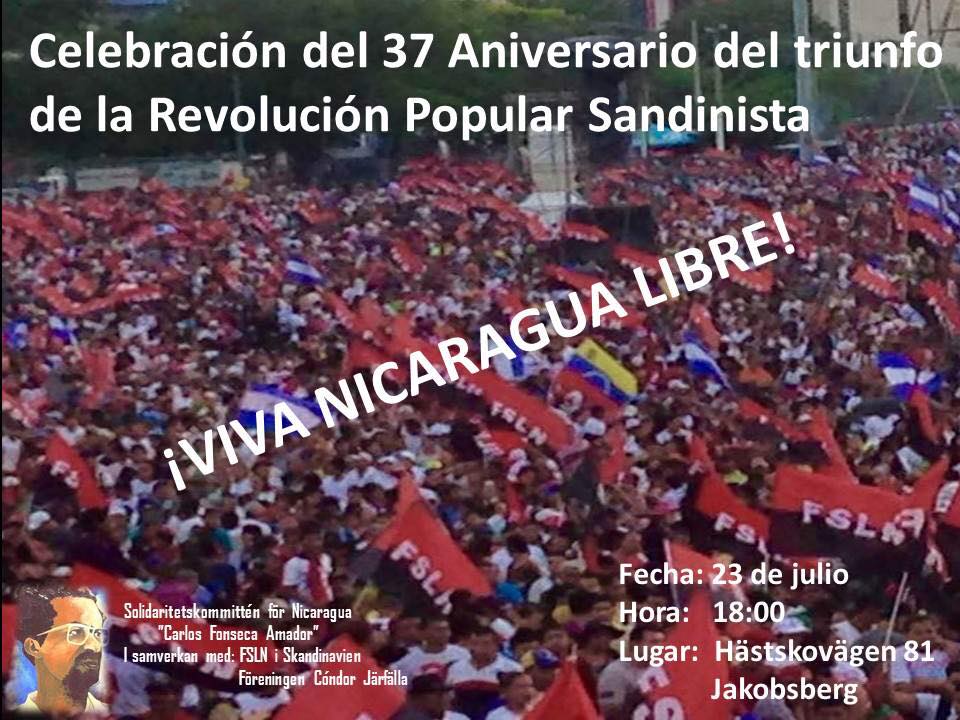 El Comité de Solidaridad por Nicaragua Carlos Fonseca Amador (CSN-CFA) de Estocolmo-Suecia y el FSLN de Escandinavia, organizó esta celebración con la presencia de la embajadora de Nicaragua ante el Reino de Suecia, Verónica Rojas, Orlando Duarte, Ministro consejero con funciones consulares ante el Reino de Suecia y Francisco Chavarría, primer secretario y asuntos consulares.También nos acompañaron diferentes organizaciones solidarias,las cuales apoyan firmemente al pueblo sandinista y su revolución, entre ellos la delegación de la embajada cubana, Asociación de amistad Sueco-cubana, Cubanos x Cuba, Comité 5 de octubre, Asociación Cultural y Solidaria Oswaldo Guayasamín y compañeros latinoamericanos.